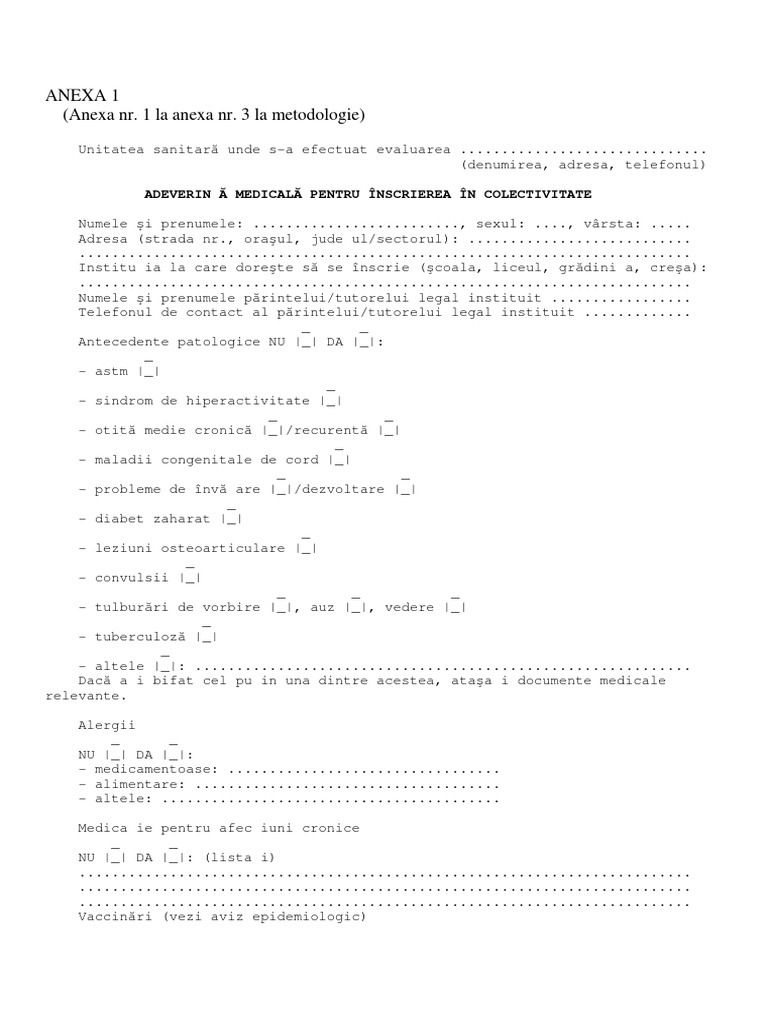 Adeverinţă Medicală Pentru Inscrierea In Colectivitate Pdf