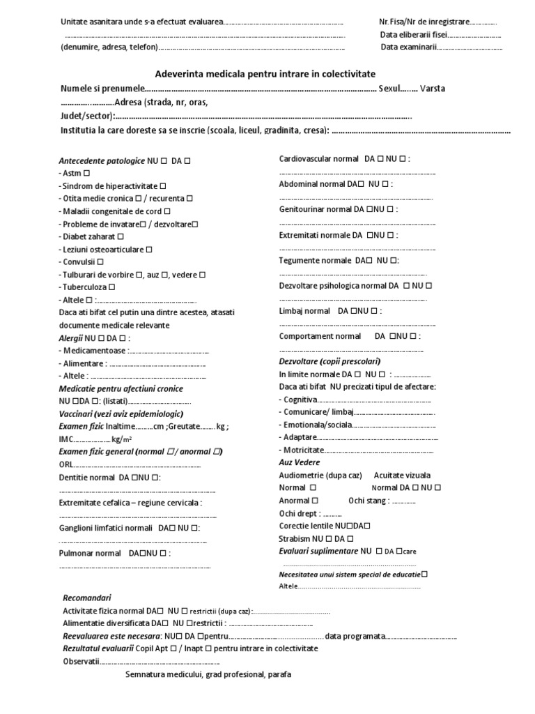 Adeverinţă Medicală Pentru Inscrierea In Colectivitate Pdf