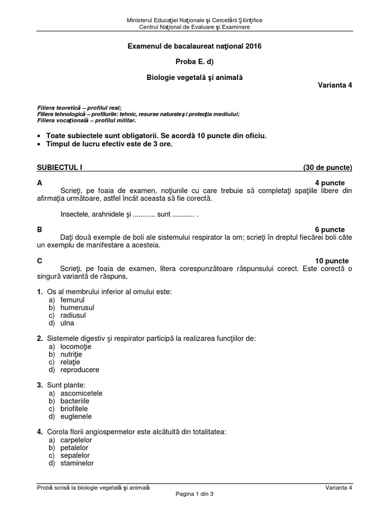 Subiecte Biologie Vegetală și Animală 2018 Edu Ro Avem Baremul De Corectare La Examenul De Bacalaureat Person Personalized Items