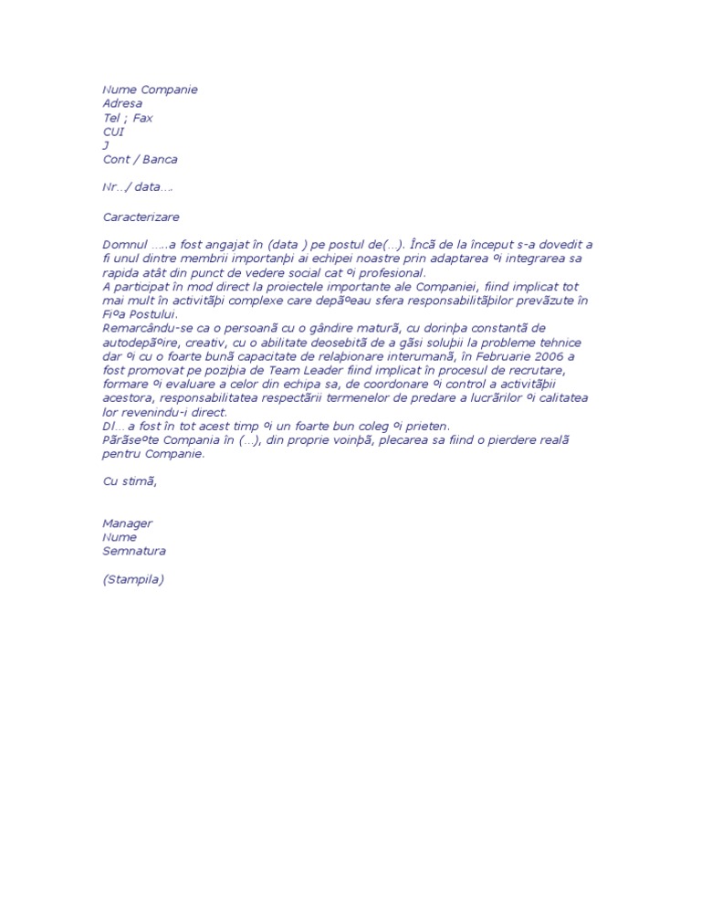 Model Caracterizare De La Locul De Munca Pentru Tribunal