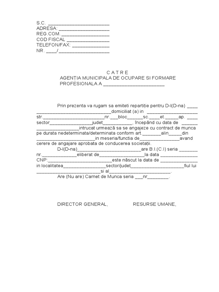 Model Cerere Angajare Pdf