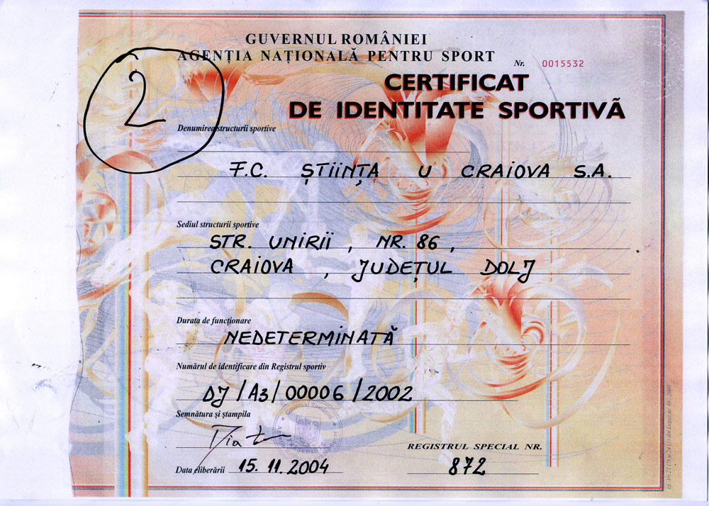 Certificatul De Identitate Sportiva Cis Nr 77462 Asociatia Club Sportiv Viitorul Bucurestii Noi