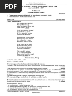 Evaluarea Nationala Limba Romana