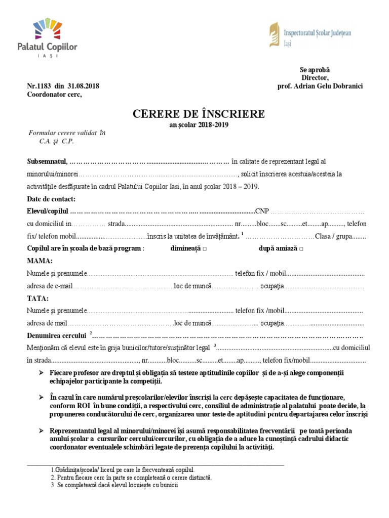 Cerere De Inscriere La Liceu Model