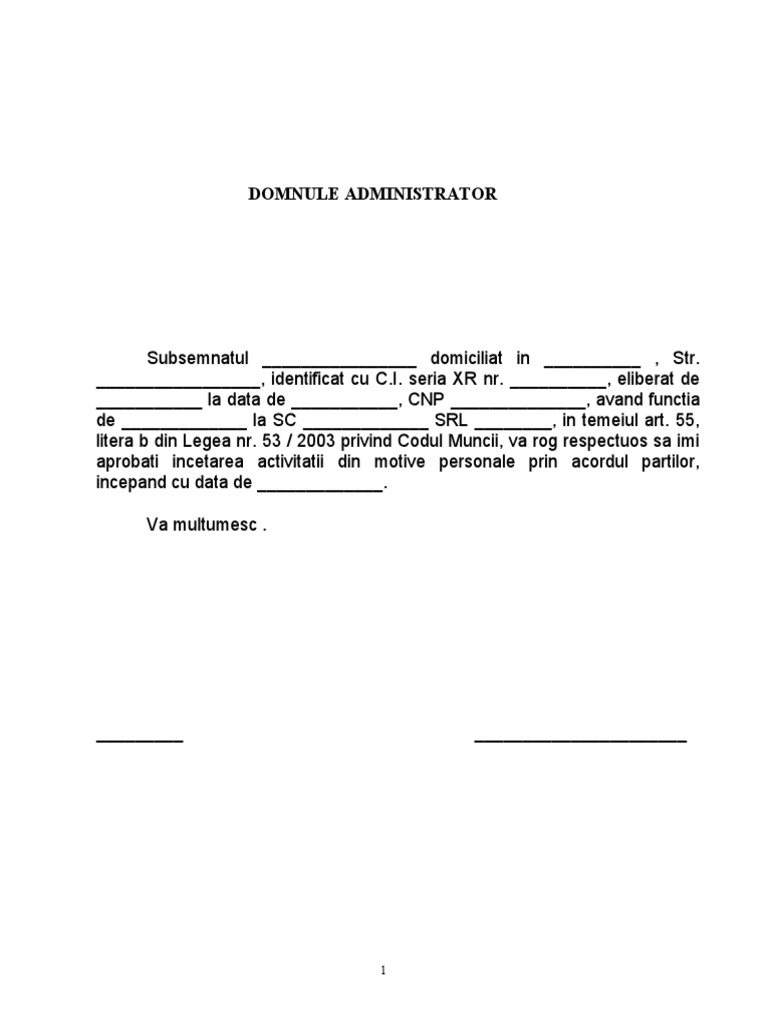 Cerere Demisie Cu Si Fara Preaviz Sinlibuti