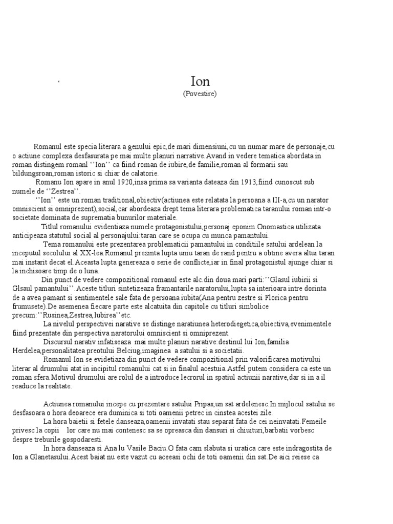 Ion De Liviu Rebreanu Rezumatul Pe Capitole Lecture Speech Vortrag