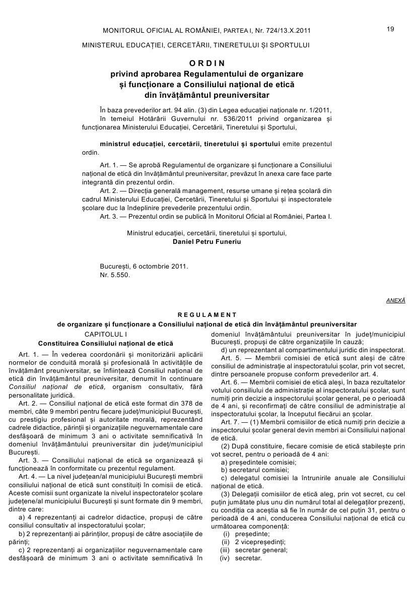 Ordin Nr 5556 Din 7 Octombrie 2011 Privind Aprobarea