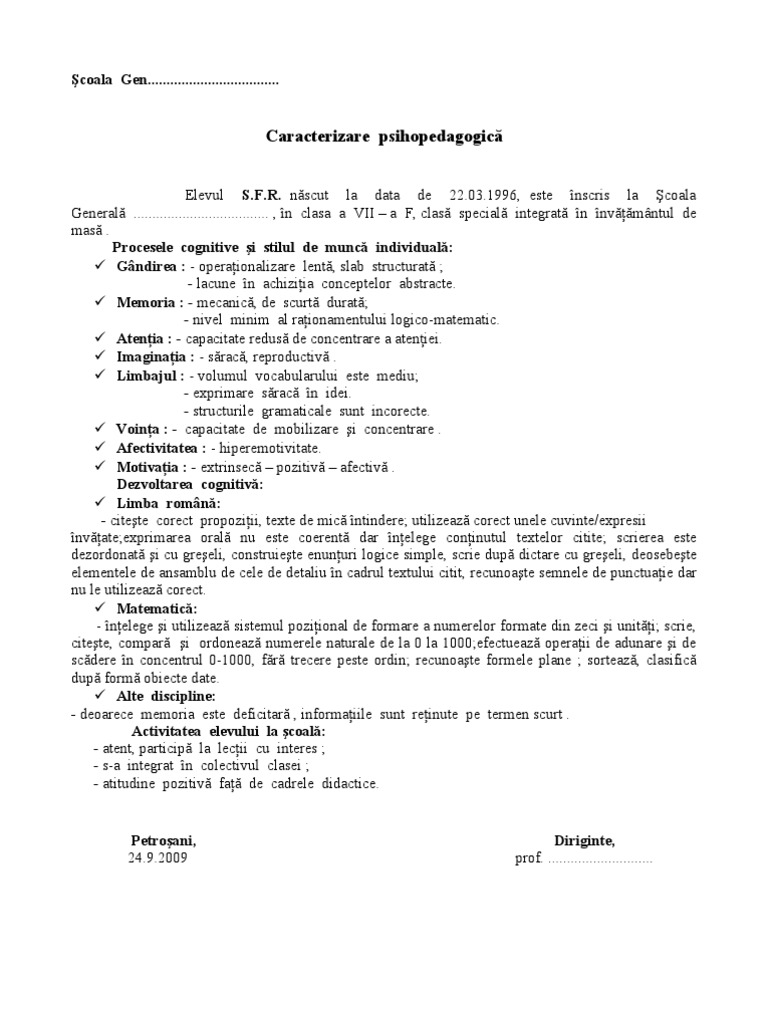 Doc Fisa De Caracterizare Psihopedagogica Sandu Oana Georgiana Academia Edu