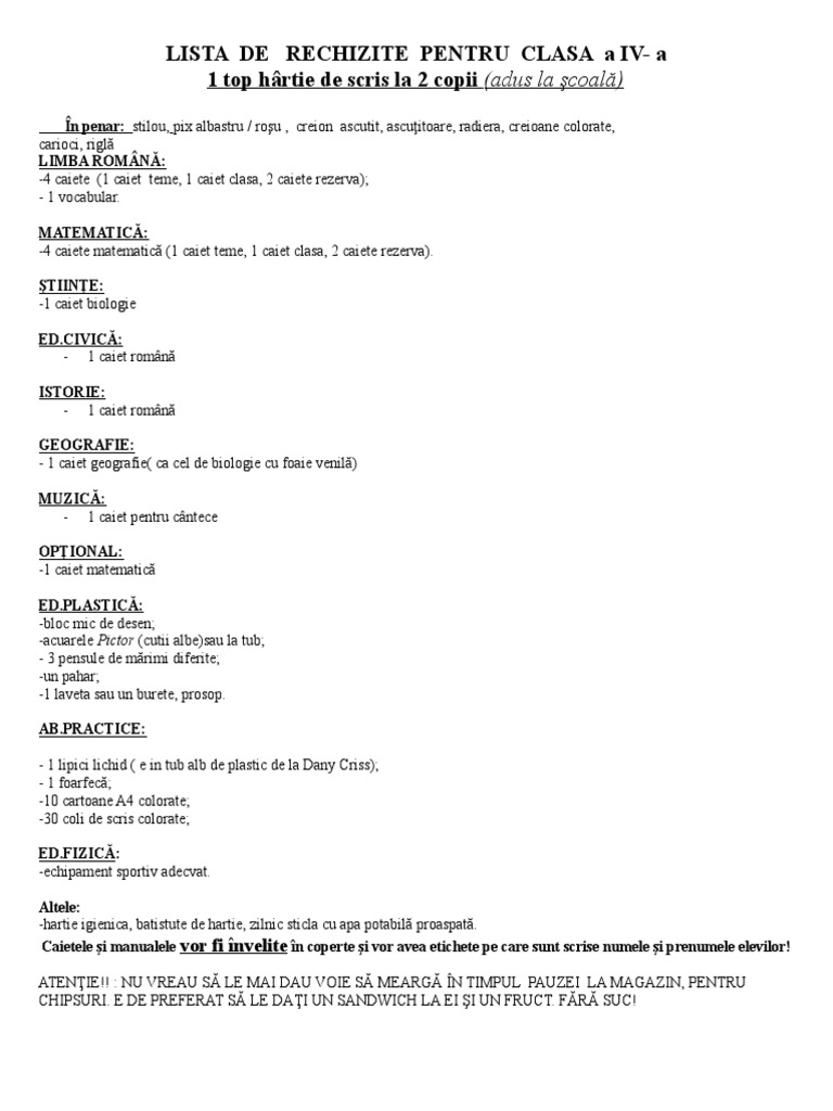 Lista Rechizite Clasa I 3 Caiete Tip I Cu Liniatura Oblic De Clas De Cas De Teste