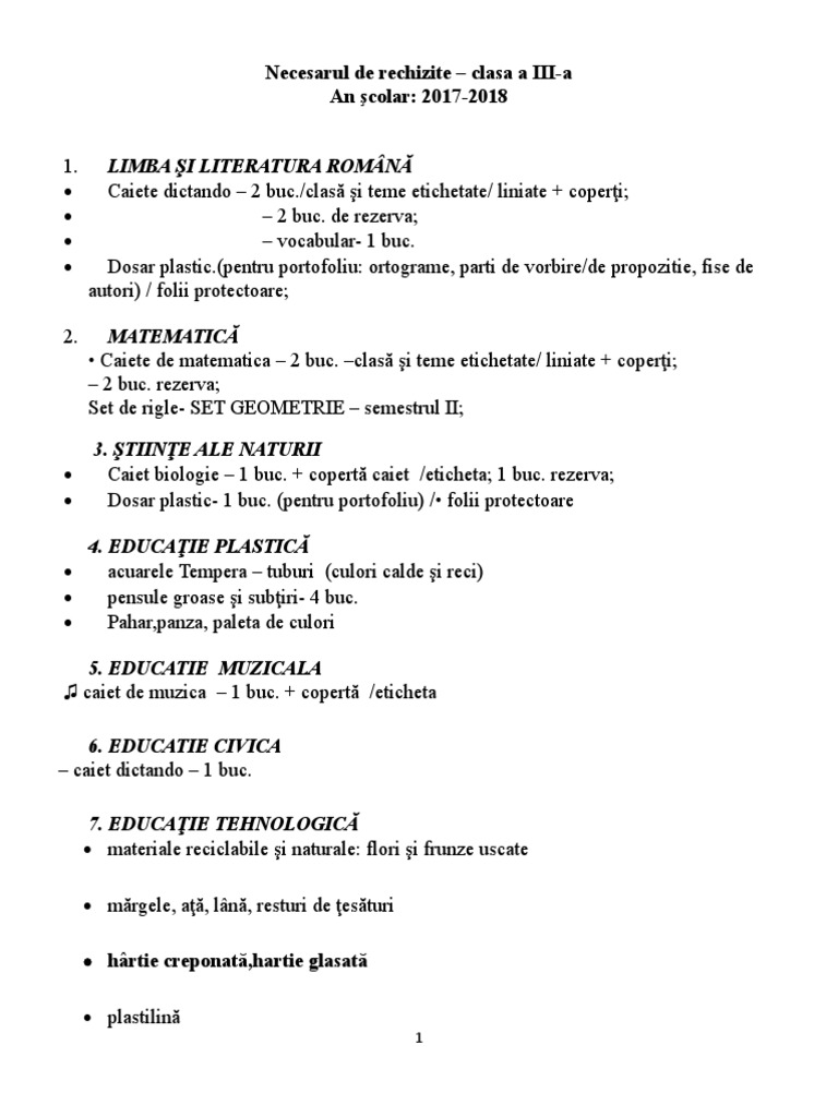 Rechizite Necesare Inceperii Noului An Scolar Clasa A Iii A