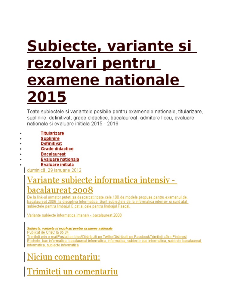 Subiecte Titularizare Educatori 2016 In 2020 Templates