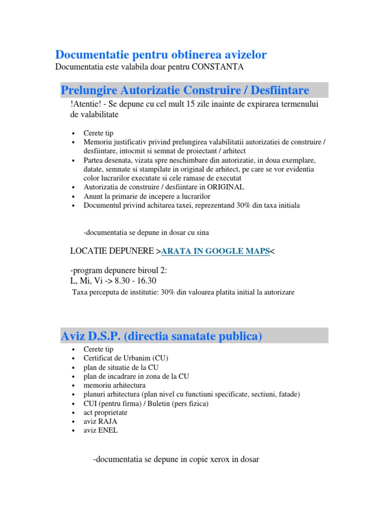 Acte Necesare Avize