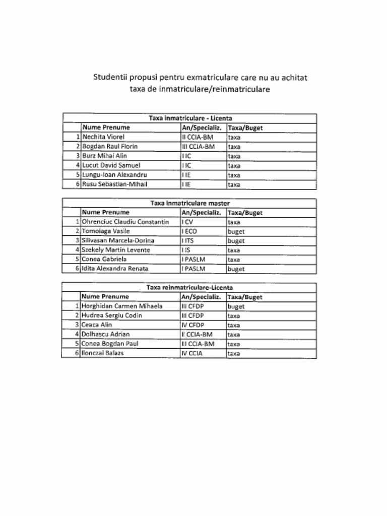 Propuneri Exmatriculare
