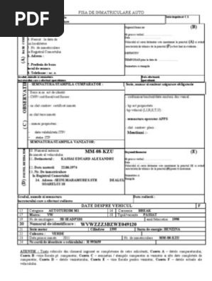 Fisa De Inmatriculare Auto
