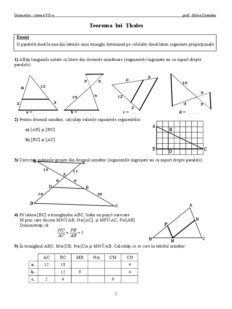 Teorema Lui Thales Paralela La O Latura A Triunghiului Proportionalitate Youtube